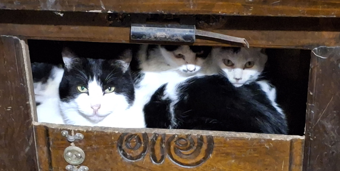 추위에 고양이들도 이렇게 모여서 체온을 나누고 있다.