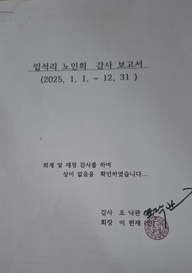 노인회 정기총회가 있어 다시 한번 차출 되었다.